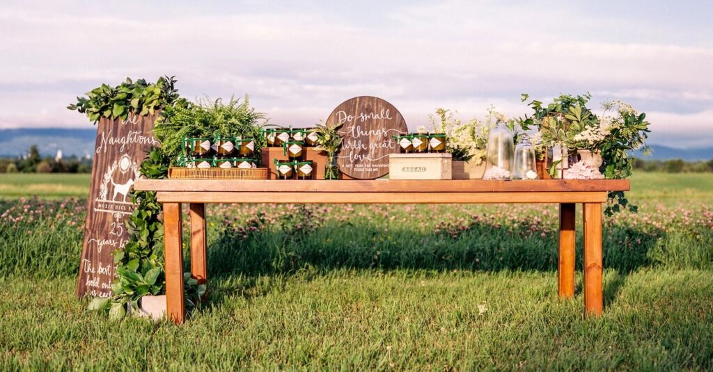 Decorative elements like personalized welcome signs, reserved seating markers, and table numbers create cohesion throughout your venue. These items simultaneously serve functional purposes and contribute to your overall esthetic.